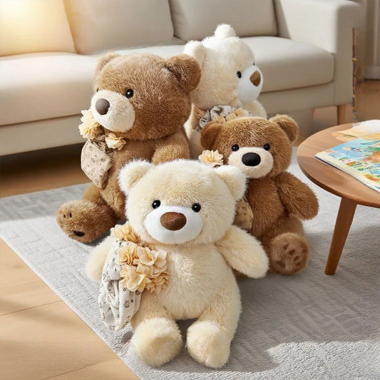 Cute Teddy Bear With Flower Bouquet Plush Toys - 27/37cm
