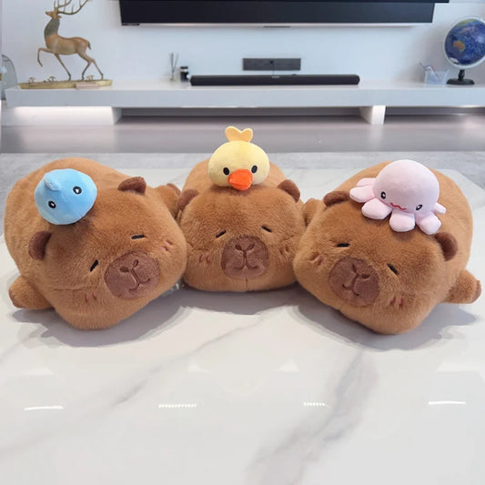 Cute Lying Capybara with Octopus/Wale/Duck on Head Plush Toys 32/42cm