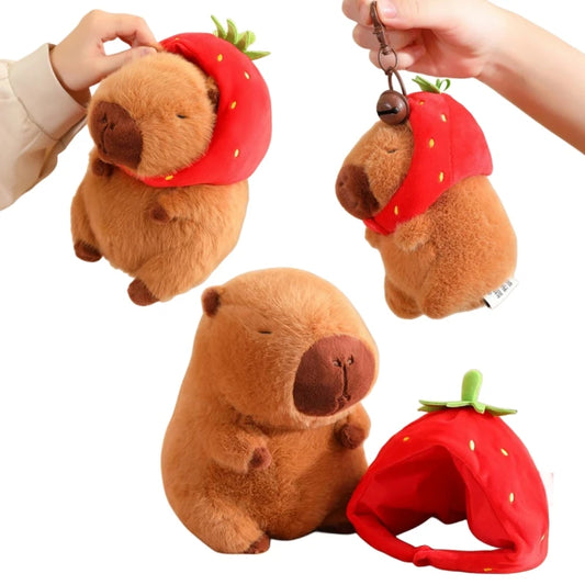 Cute Capybara With Strawberry Hat Plush Toys 22/33cm or Plush Keychains 12cm