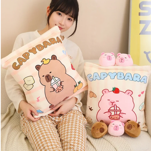 A Bag of 6 pcs Capybara Mini Plushies Pillow Plush Toys 35X45cm - Pink/Brown