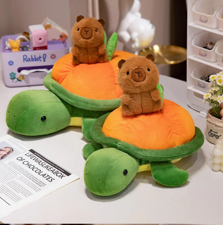 Capybara Meets Persimmon Turtle – Plush Toy or Backpack Magic!